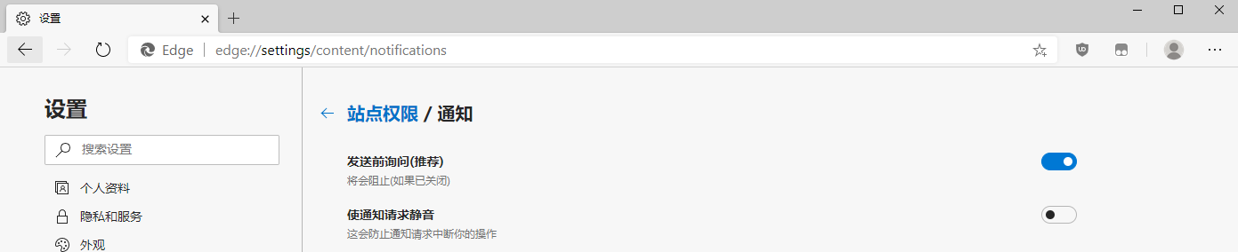 该功能目前此前已经在Chrome浏览器中手动启用,而现在该功能也在基于Chromium的Edge浏览器上实现了。要启用该功能,需要在 Edge Beta版 (83及以上) 中访问设置>站点权限>通知,并选择将其启用。