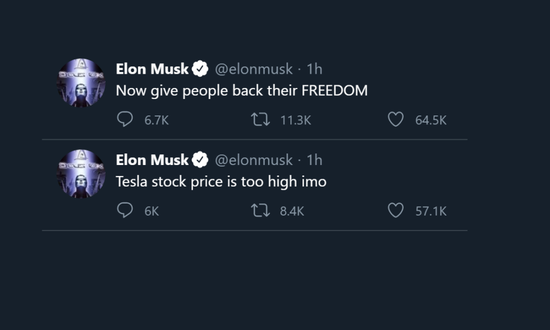 美国当地时间周五,马斯克发文称将出售“所有实物资产”,随后又称“特斯拉股价太高”,导致该公司股价下跌。在最新财报电话会议上,马斯克炮轰加州为减缓新冠病毒传播而采取的“就地隔离”禁令,称无法恢复生产应被视为特斯拉面临的重大风险,而且违背了宪法赋予美国公民的权利。现在还不清楚发推文称特斯拉股价过高是否属于证券欺诈,法律专家们对此也有不同看法。