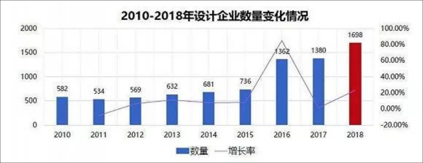 2015年,是整个国产芯片的春天,被从业者称为“大基金”的国家千亿级芯片产业扶持基金刚刚成立。钱和人都涌了进来,芯片设计企业的数量更是突飞猛进,在中国半导体行业协会集成电路设计分会的统计中,2015年,国内拥有736家芯片设计企业,一年后,翻倍至1362家。