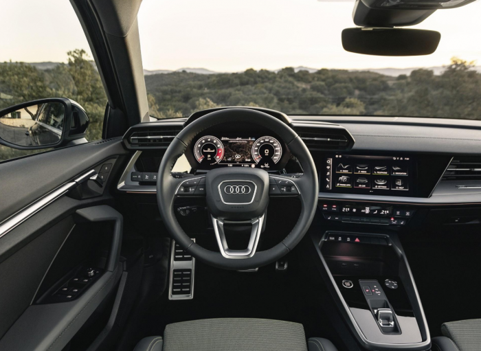 从官方此前放出的A3两厢版官图来看,内饰方面采用了奥迪家族最新的设计语言,搭载有保时捷911同款的电子档把。并且空调出风口也采用了全新设计样式,被设计在了仪表盘上方两端,极具战斗感。