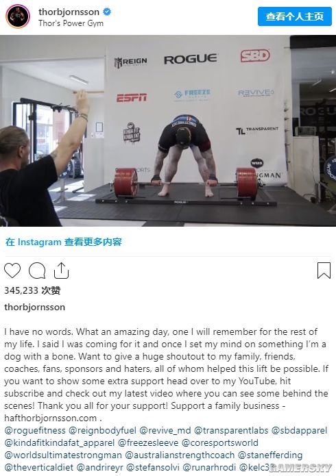 比昂森曾在2018年世界大力士锦标赛上获得冠军,首次拿到“世界上最强壮男人”称号。
