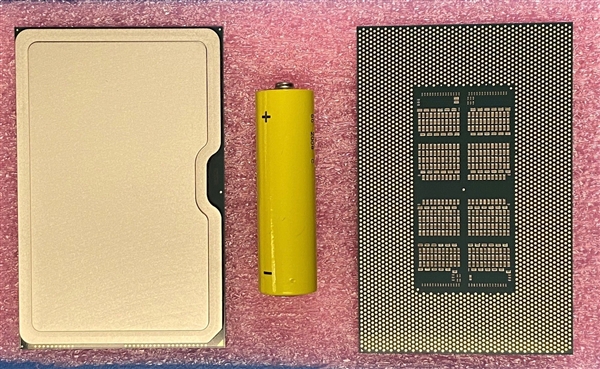 同时,芯片背面可以看到分成八组的元器件,明显对应正面的八个GPU核心,统一封装在一颗芯片内,这也与Intel此前公布的设计思路相同。