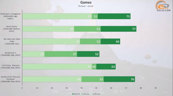 在部分游戏中,0.01% Low为代表的低帧率只有无主之地3中算是翻车了,只有15fps,不过0.1% Low依然在37fps以上,总的来说最低帧方面维持在30fps以上也没啥问题。