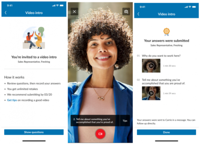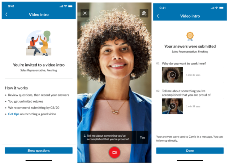 考虑到这一点,领英还添加了“虚拟介绍”,以更好地促进企业线上招聘过程。招聘经理可以要求潜在候选人通过视频或书面方式进行简介。Barnes表示,由于这些工具都不是实时的,可以让求职者根据潜在雇主自定义其自我简介。
