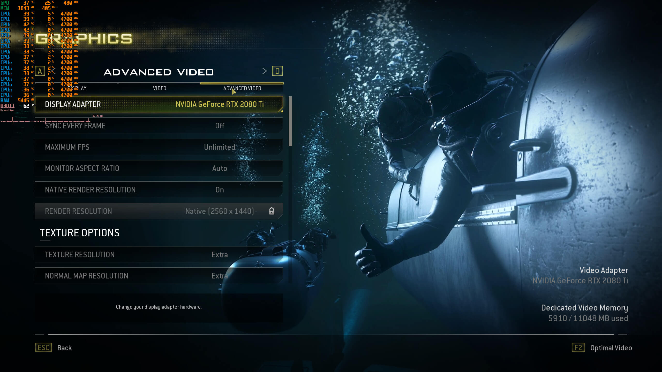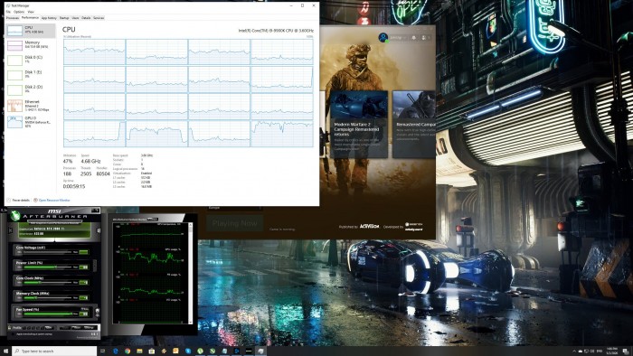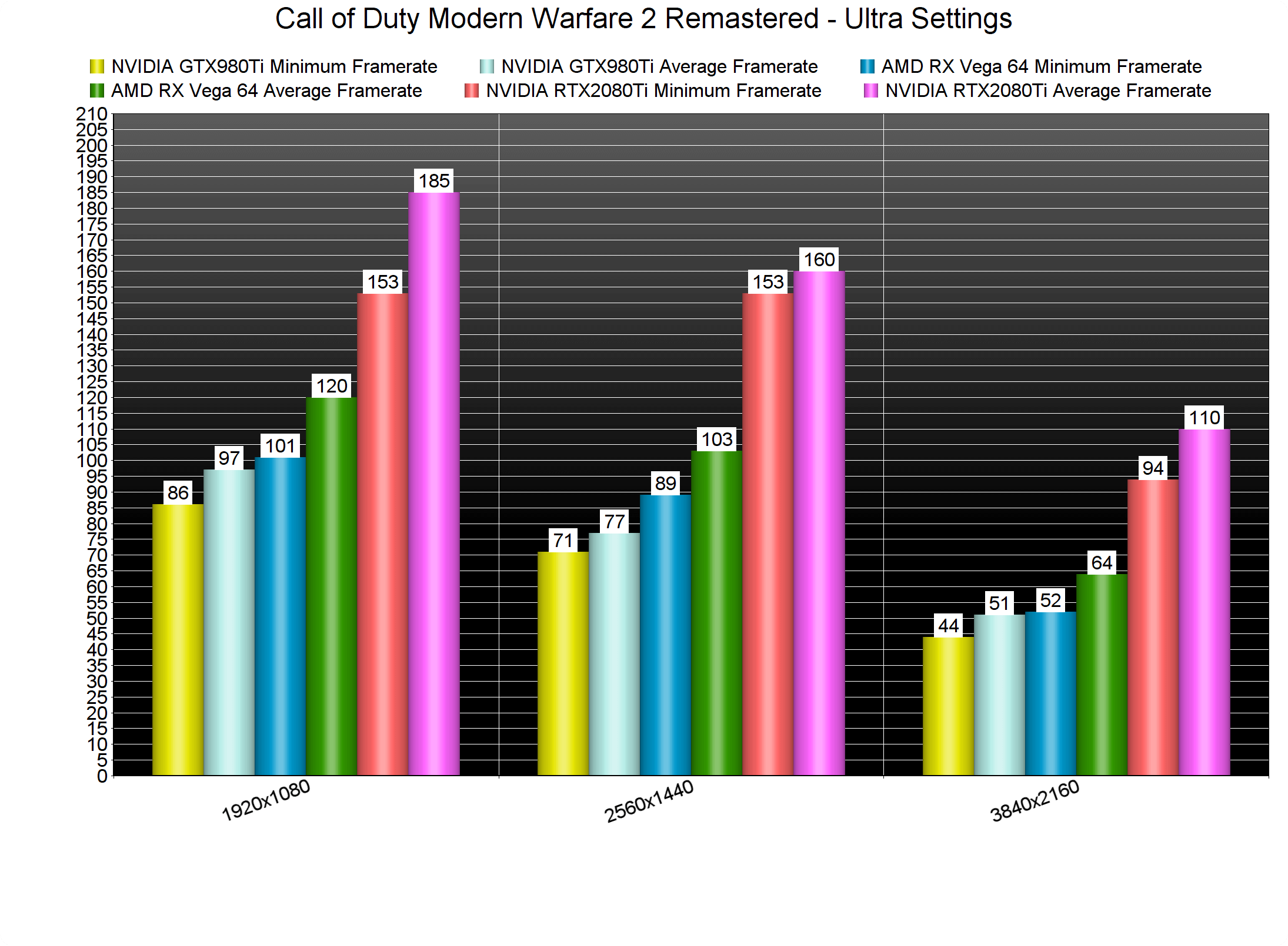 《使命召唤6:现代战争2 重制版》使用的是DirectX11 API,所以在较老的CPU上表现较差,我们的i7 4930K能够在1080p超高画质下维持60fps,但明显要比i9 9900K差一截。