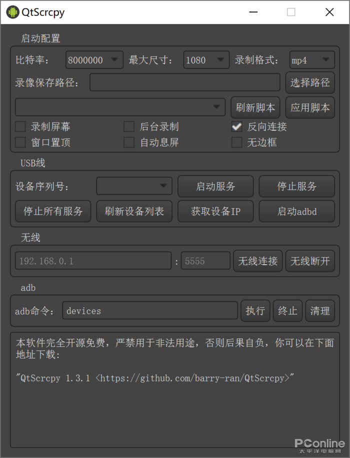 QtScrcpy中文说明页面:https://github.com/barry-ran/QtScrcpy/blob/master/README_zh.md