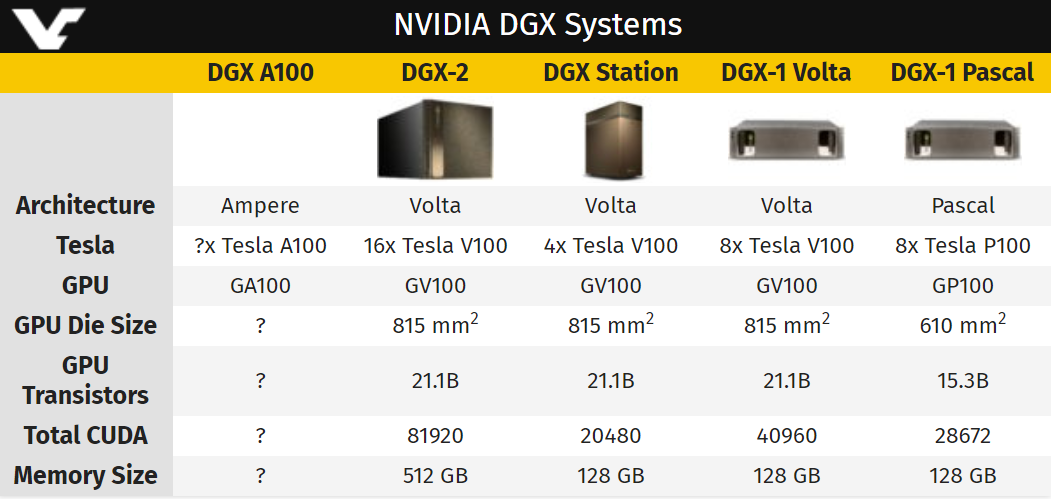 NVIDIA此前使用的是DGX-1、DGX-2等产品型号,这次没有延续DGX-3,但是DGX A100的命名反而直接暴露了其身份。