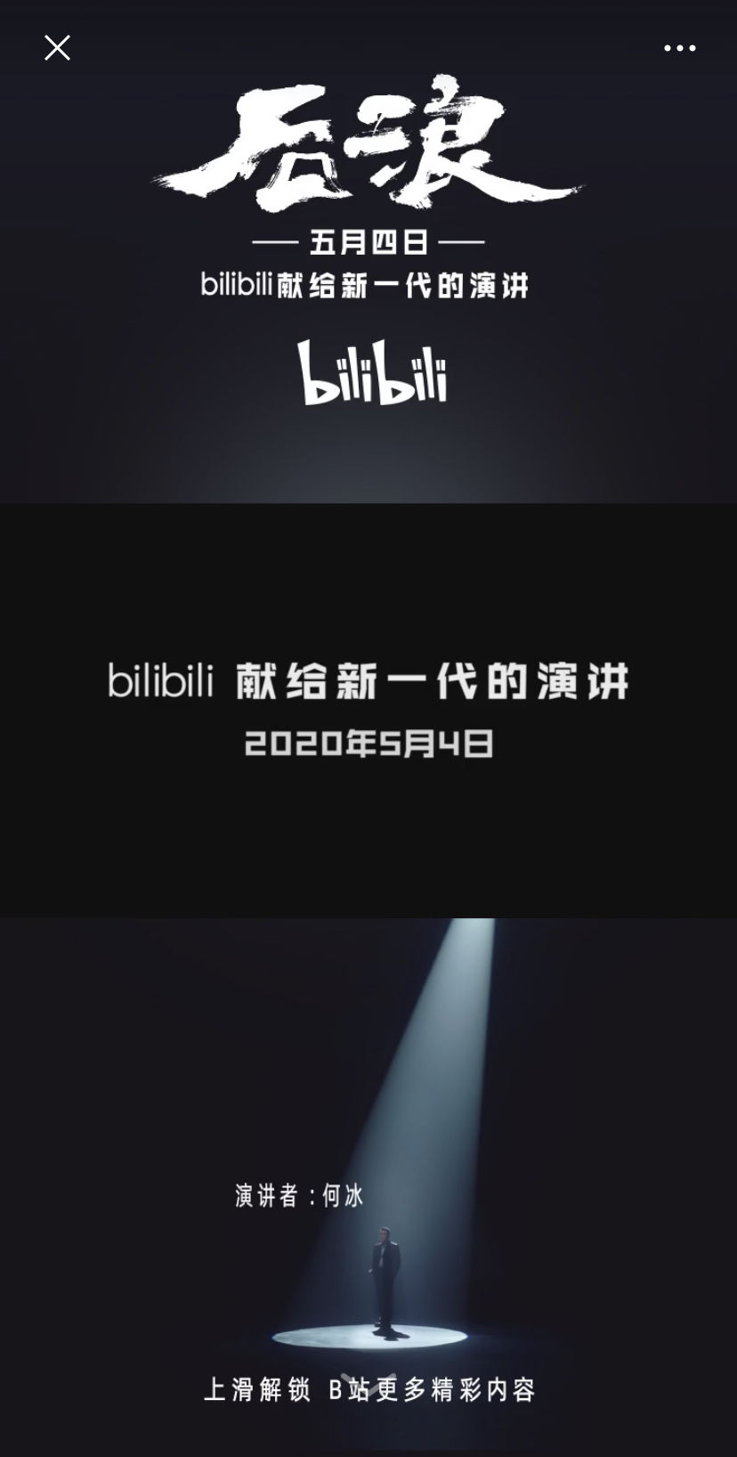 老戏骨何冰题为《后浪》的演讲,穿插着 B 站年轻 up 主们各种视频的剪辑,配上悠长激昂的配乐,一夜之间打动了电视机前和朋友圈里的“前浪”们,也打穿了 B 站与主流文化的那堵墙。