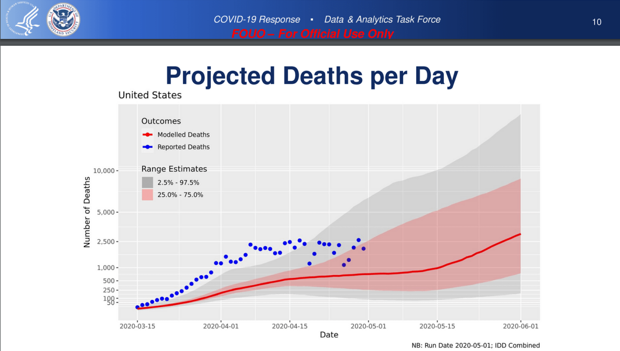 这是根据《纽约时报》获得的一份政府文件,随着全美各地的企业重新开始营业,CDC预测新冠病毒死亡人数将从过去一周每天约2000人增加到每天接近3000人。这些估计是由CDC建模,并收集到联邦应急管理署的一份报告中。