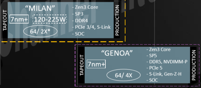 不过这张路线图中的Genoa处理器写的还是Zen3核心,工艺也是7nm+,并非现在的5nm Zen4,由此看来这个路线图实际上是早期,跟现在的设计并不相符。