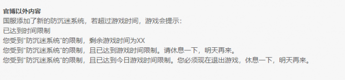 您受到“防沉迷系统”的限制,且已达到今日游戏时间限制。您必须现在退出游戏,休息一下,明天再来。”