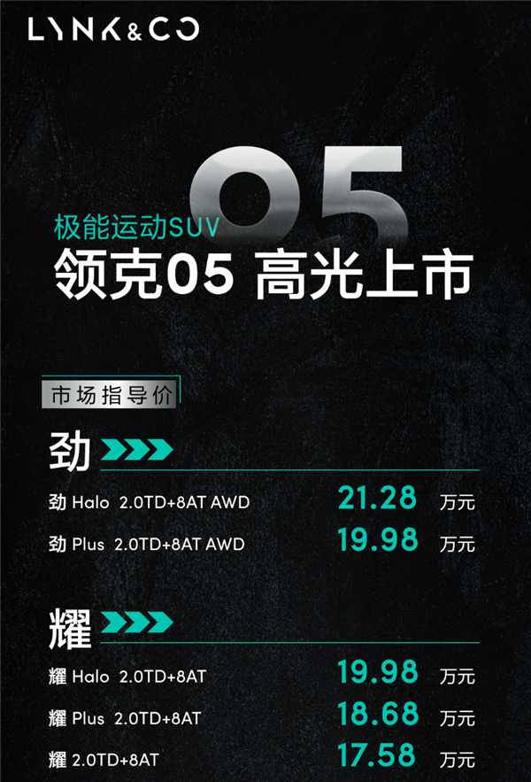 17.58-21.28万元 领克05正式上市:搭沃尔沃2.0T+爱信8AT