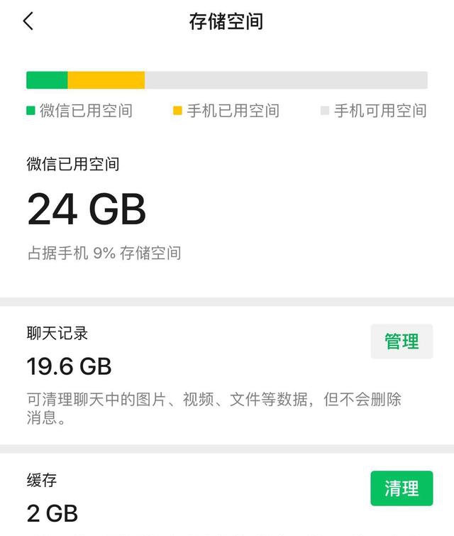 安卓版本下,微信也会在清理的列表中,显示缓存的大小,但没有单独的清理缓存的按钮,估计应该是在清理数据的时候,一并释放了缓存空间。