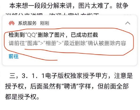 被氧化的糖:华为保护我,我解释一下,是QQ想删我的图,但是华为系统拦截了!所以我图还在,被删掉的是副本还是虚的什么的我不太懂,我恢复了被删除文件,然后发现跟我存的华为系统保护的图名字前称一模一样。一共有11张。
