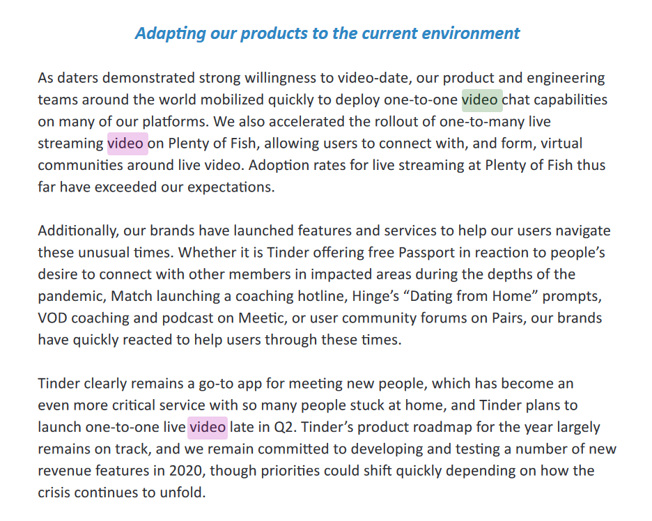 知名约会应用程序Tinder计划在今年晚些时候推出一对一视频聊天功能。母公司Match Group在今天的财报会议上宣布了这项新功能。虽然将官方并没有提供细节,但该功能对于这款拥有数百万用户的应用来说可谓是重量级新闻。