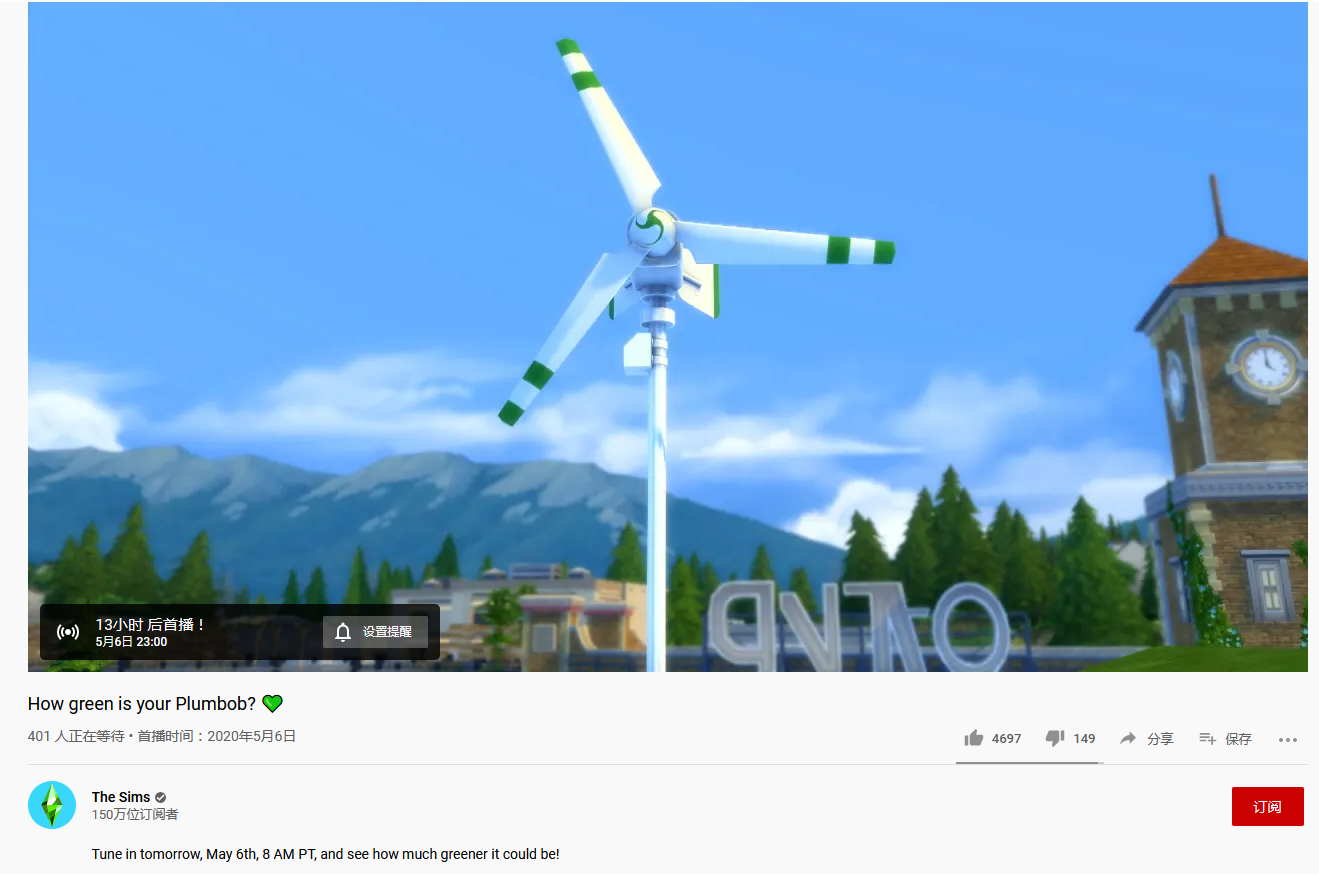 根据《模拟人生》官方油管频道公开的新消息,今日(5月6日)晚上11点《模拟人生4》或将公开新DLC内容,从目前官方公开的消息来看,此次新DLC可能和绿色环保、新能源有关,以下为相关细节。