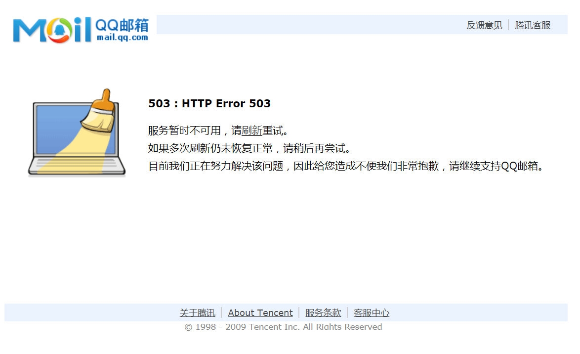 QQ邮箱崩了登上微博热搜 PC端提示503错误