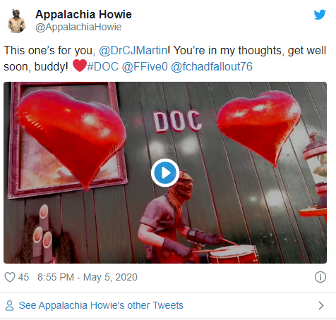 游戏名“CJ Martin”的Brent Fairchild在《辐射76》里可算是个名人。他从进入游戏世界以来一直兢兢业业角色扮演一名绝对中立的医生,为所有的玩家提供医疗救助。而这位被玩家们爱戴的医生现实生活中遭遇火灾,得知消息后的玩家社区立马做出反应,成立了众筹项目为其筹集善款,试图回报他在游戏中的付出。