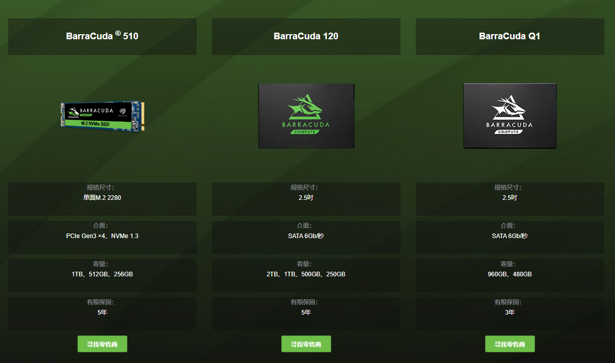 在酷鱼Q1系列发布之后,希捷的的消费级SSD产品线就是如下所示:高端的酷鱼510(其实还有PCIe 4.0的酷鱼520系列)、主流市场的酷鱼120及入门/低端的酷鱼Q1,前两者保修5年。