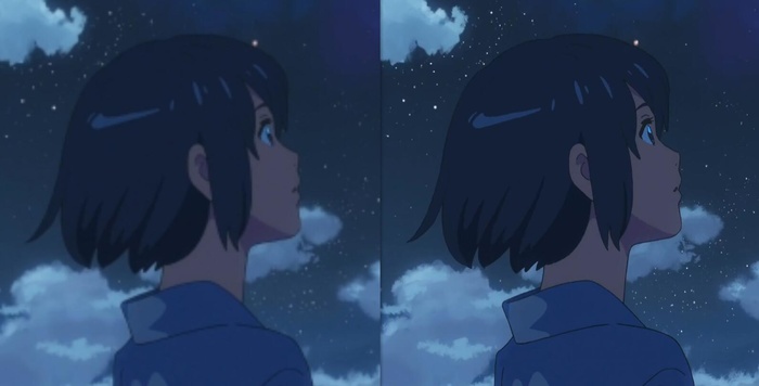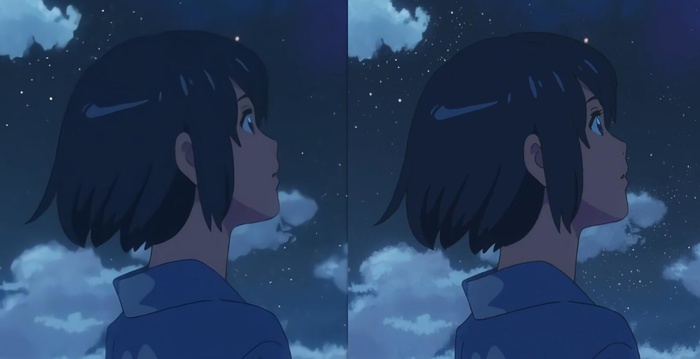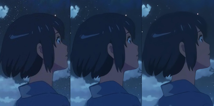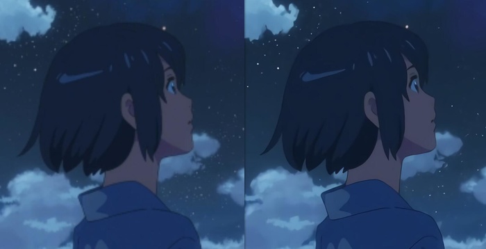 再来试试动漫图片。这里选取了《你的名字》动画电影中的一张截图,原分辨率为1920x1080,将其压缩到480x270后,分别用传统方法和Bigjpg放大4倍。