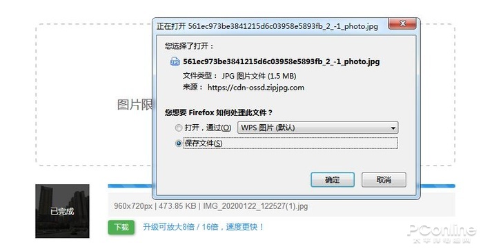 Bigjpg的放大由于使用了AI技术,因此需要等待几分钟才能出结果。完成后,点击下载就可以把放大后的图片保存到本地了。