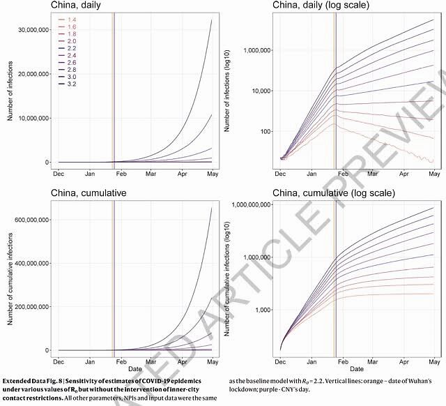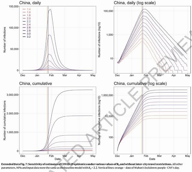 对武汉的封锁没能完全阻止病毒从武汉扩散出去,因为封锁是在春运返乡相对靠后的时段实施的。但是,如果不执行城际旅行限制,武汉以外的城市和省份将迎来更多来自武汉新冠病例,受影响的地理范围将扩大到中国偏远的西部地区。