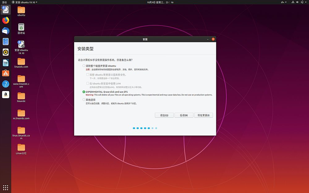 早在 Ubuntu 19.10 中,开发团队就已将 ZFS (OpenZFS/ZFSOnLinux) 的实验性根文件系统添加到其桌面 Ubiquity 安装程序中,以作为实验性的选项。到了 Ubuntu 20.04 LTS,使用 ZFS 作为根文件系统仍是一个实验性的选项,但他们对安装程序的 UI 做了一些改进,升级了 ZoL 快照,并围绕 Zsys 守护进程提供了更多的改进,其中包括在 APT 事务上自动生成 ZFS 快照。这与 GRUB 引导加载器的支持相配合,如果出现严重的软件包故障,可以快速回滚到系统的早期版本。