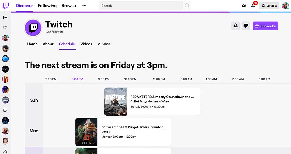 展望未来,玩家们在访问离线频道时不再会遇到离线图片或空白视频--相反,他们将看到频道预告片,这些预告片会自动显示给新的访问者。新的设计还带来了一个简化的日程安排,让直播者可以清楚地知道自己下一次上线的时间。