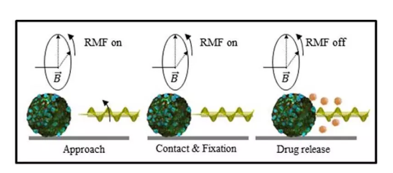 其原理是,医生利用磁场将机器人引导到人体所需的位置,一旦它到了那里,它就会刺入目标细胞。这样,它就可以一直待在那里,直到任务完成。研究人员在充满液体的腔体中测试了微型机器人,引导它们附着在组织样本上。当手动操纵磁场时,需要55秒,但一个专门设计的自动瞄准系统只需7秒就能完成。