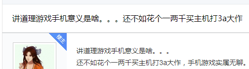 游戏平台又可以大致分为:主机、电脑、手机。而这三类平台中,网友又调侃:主机游戏瞧不起电脑玩家,电脑玩家瞧不起手机玩家。