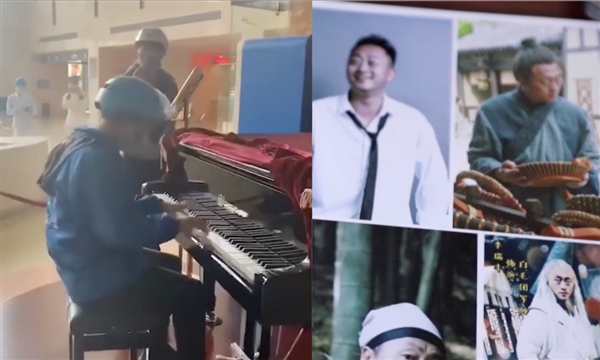 左图:李瑞丰送完单在医院弹钢琴;右图:李瑞丰拍戏时的剧照