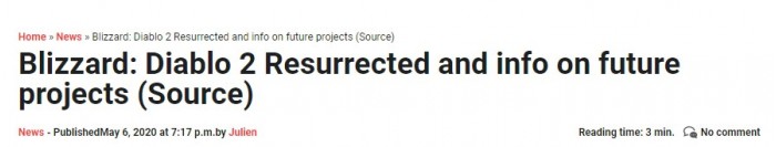 根据actugaming的消息来源称,《暗黑破坏神2:重生版》将由Vicarious Visions工作室打造,Vicarious Visions工作室曾经参与过《命运2》的游戏制作。此外,actugaming还透露,暴雪目前正在开发三款手机游戏,但不知道《暗黑破坏神:不朽》是否属于这三部作品之一。