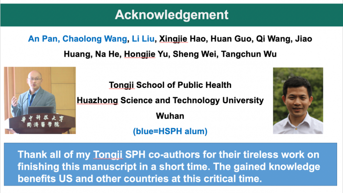 这份工作是和华中科技大学同济公共卫生学院的许多老师合作的结果,他们做了非常多的努力,因为很多老师当时还在居家隔离,还不在武汉,所以能够在这么快的时间(这篇文章从分析到写完总共10多天的时间)完成这篇文章,非常感谢他们的帮助,尤其是潘安老师,王超龙老师、刘莉老师、公共卫生学院院长邬堂春老师、生物统计系和流行病学系的系主任魏晟老师,非常感谢这些老师们非常努力的工作,使这篇文章在很短的时间内完成。当时的目的是希望从中学到的知识能够帮助美国和世界上其他各个国家。