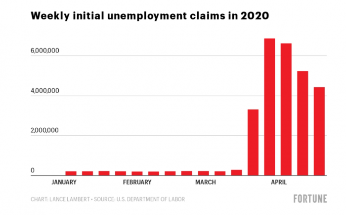 美国失业率从3月下旬起比往年高出很多很多倍,和美国前20年的失业率比起来要高出很多。这对整个国家、对世界的影响非常非常的大。