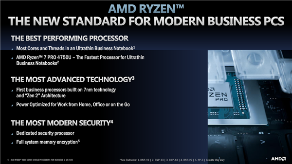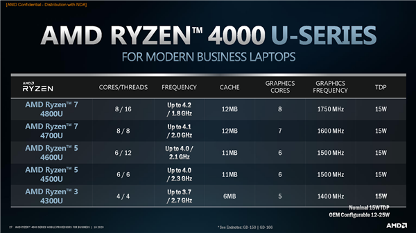当然,如果OEM客户愿意,锐龙4000U系列同样可用于打造商务本,只是会缺少一些专门的安全、管理、稳定特性。