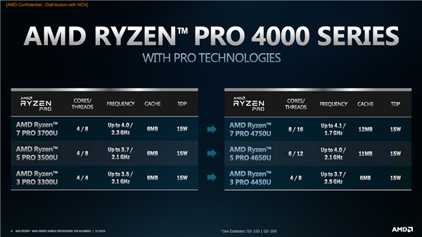 AMD 7nm新工艺、Zen2新架构的锐龙4000U、锐龙4000H系列处理器在消费级轻薄本、游戏本上大放异彩,产品越来越丰富,性能、续航、价格都令人极度舒适。现在,AMD又正式发布了全新的锐龙PRO 4000U系列。