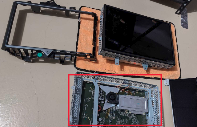 嗯。。就是下面红框框里面的那个板子,汽车行业里一般管它叫 MCU ( 媒体控制单元 ) 。