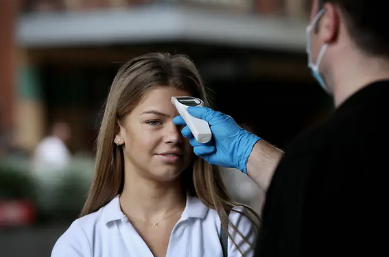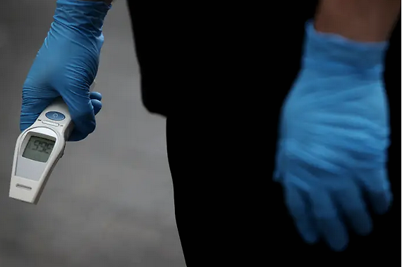 在客户进入苹果专卖店前,员工会测量他们的体温。