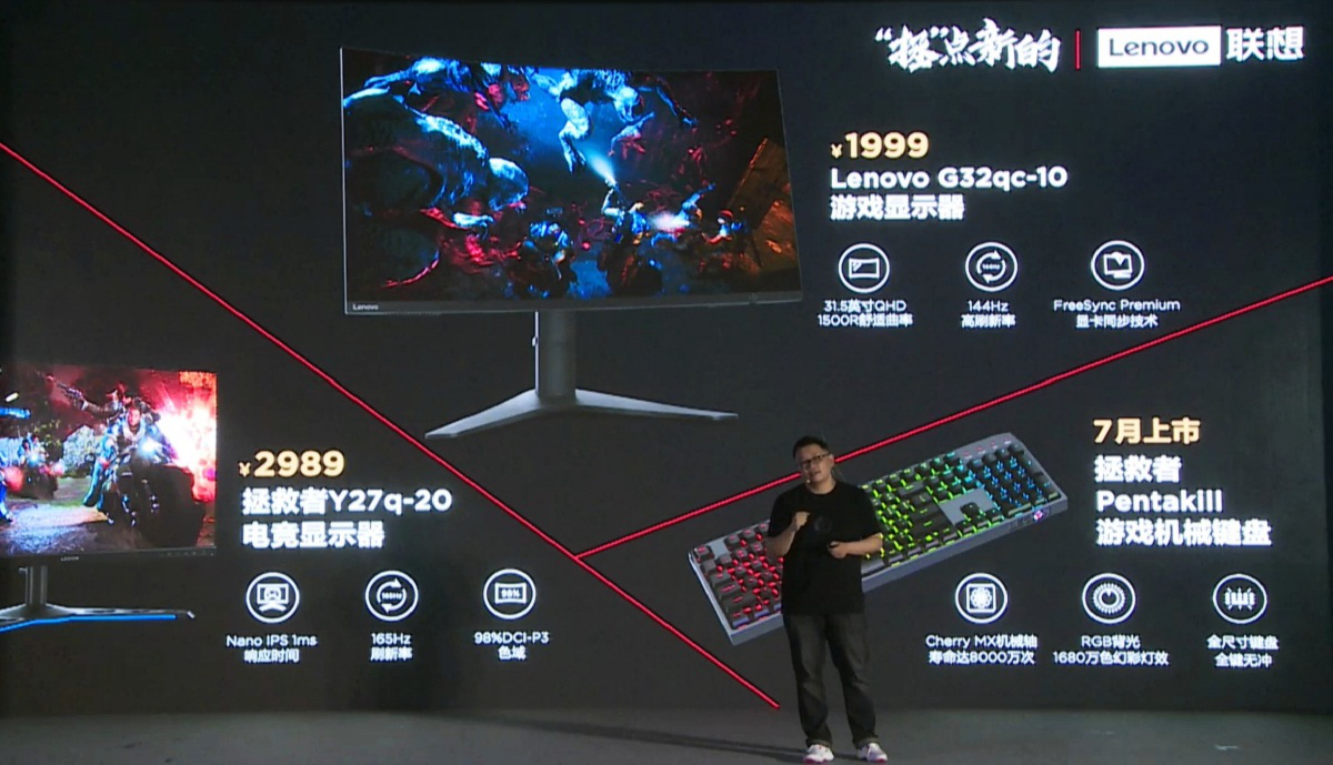除了拯救者键盘的发布,在本次拯救者发布会上新款 Lenovo G32qc-10游戏显示器和拯救者Y27q-20显示器也进行了亮相。其中Lenovo G32qc-10游戏显示器具备31.5英寸QHD 2K分辨率、1500R超清曲面、支持AMD FreeSync显卡同步技术以及144Hz电竞级刷新率,可壁挂且内置电源,该显示器已经过莱茵TÜV低蓝光&不闪屏认证;而拯救者Y27q-20显示器则是一款27英寸nano IPS QHD电竞显示器,具备165Hz刷新率、10.7亿色,DCI-P3色域达到98%,1ms的极速响应时间让玩家不错过每一个瞬间,支持AMD FreeSync显卡同步技术并且该显示器已获得莱茵TÜV Eye Comfort眼部舒适认证。高刷新率、高色域、极速响应等特点让以往用户在游戏过程中遇到的操作迟滞、画质低下、视觉疲劳等痛难点问题都得以解决。