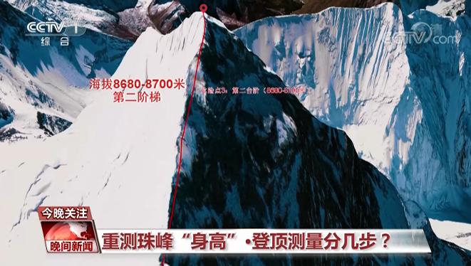 测量队员们将视天气情况择机向珠峰顶峰发起冲击,最后的冲击需要经过海拔8680-8700米的第二阶梯。