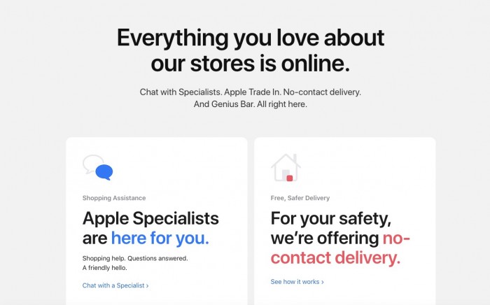 由于疫情影响,中国之外的所有 Apple Store 停止营业。苹果今天上线了新的页面,汇总了各种在线服务链接和相关信息。“你所爱的 Apple Store 在线上也有!”  ,这个页面包含了无接触快递、苹果专家帮助、分期和信用卡相关业务、苹果以旧换新、Apple Card 以及物流状态查询等。