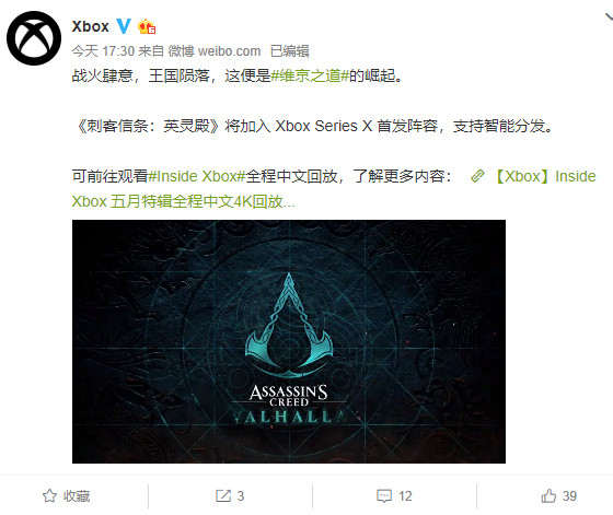 Xbox官微暗示了《刺客信条:英灵殿》的发售窗口。官微宣布《刺客信条:英灵殿》将加入Xbox Series X首发阵容,支持智能分发。这意味着本作将在今年圣诞节假期时发售,也就是10月-12月之间。