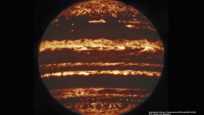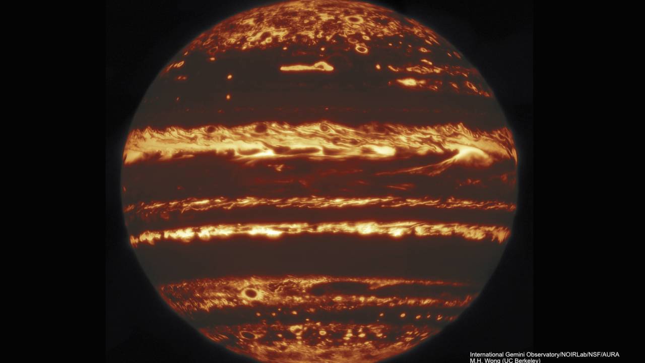 突破性的木星新图像拼凑出了这颗神秘行星的 "幸运图像",让天文学家们对这颗气体巨人云层中的剧烈风暴有了前所未有的了解。利用夏威夷毛纳凯亚岛上的双子星北望远镜,可以绕开地球大气层的影响,让我们清晰看到了木星,仿佛置身于木星周围的轨道上。