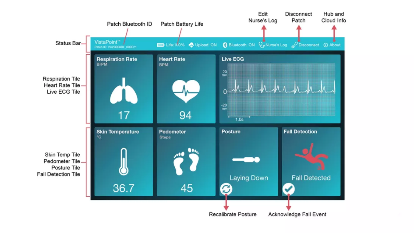 据了解,这家公司的VitalPatch是一款可以打包的医院级设备。VitalConnect CEO Peter van Haur表示:“从监控的角度来看,我们已经将ICU的规模缩小到了一角硬币大小的生物传感器。我们有能力监测心电图、连续体温、呼吸频率、活动和姿势。”另外,VitalPatch平台还可以通过蓝牙从血氧传感器、体重秤和血压监测器中提取数据从而获得一张完整的健康图片。