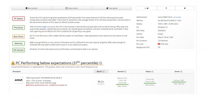 现在UserBenchmark上出现了桌面版Renoir APU的测试成绩,用的是华擎的B550主板,测试显示这个ES的Renoir是8核16线程的,基础频率3GHz,加速频率3.95GHz,这频率还没Ryzen 9 4900H高,毕竟它都跑到4.4GHz了,当然了它现在还是个工程样品,TPD也不清楚是多少,按理来说桌面APU的TDP应该都有65W,最终性能肯定会比45W的Ryzen 9 4900H更好的。
