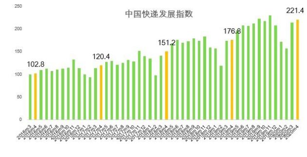 另外,4月,发展趋势指数为82.2,同比提高20.8%,预计5月快递业务量同比增速超过30%。