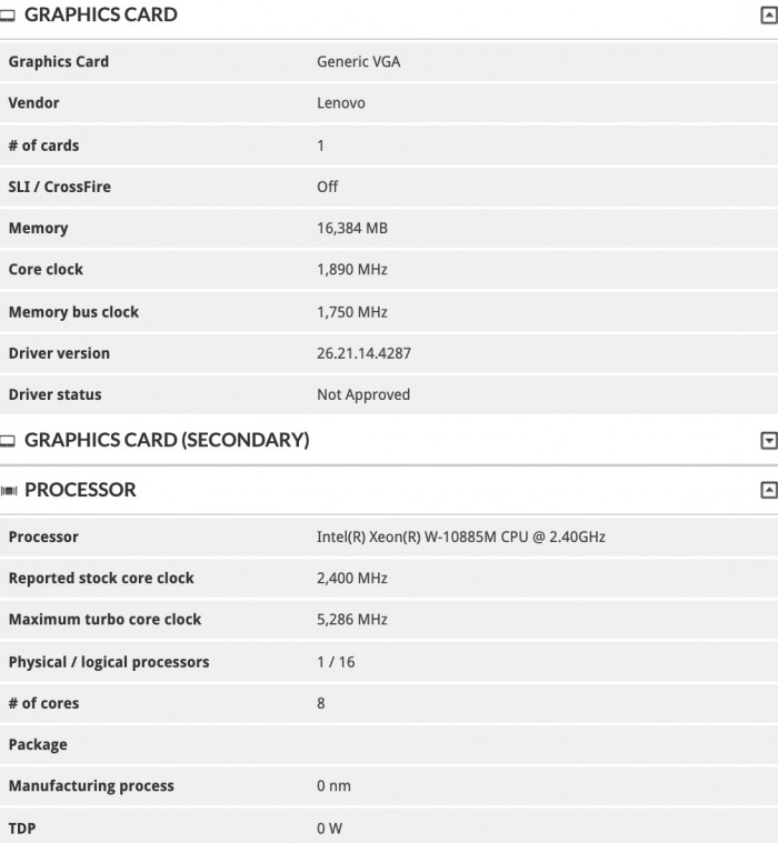 3DMark数据库里出现了新一代Intel至强W系列的两款型号,一个是旗舰级的至强W-10885M,基本就是酷睿i9-10980HK的翻版:8核心16线程,基准频率2.4GHz,睿频加速最高5.3GHz,三级缓存16MB,热设计功耗45W。