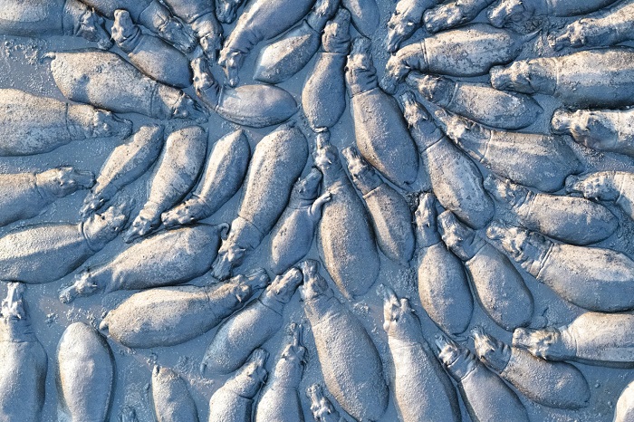 陆地野生动物组入围作品《杂乱无章的河马》(Hippo Huddle),Talib Almarri / 摄 。