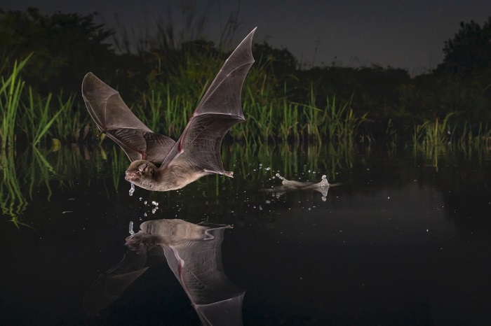 有翼动物组获奖作品,《掠过池塘》(Pond Skim),Piotr Naskrecki / 摄 。