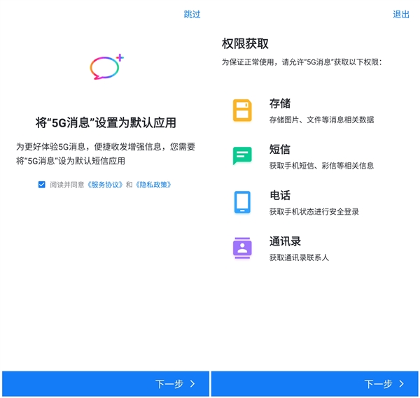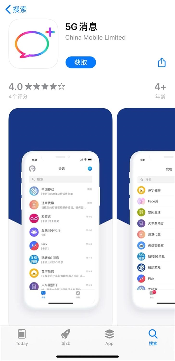 由中国移动推出、名为5G消息的APP已在苹果App Store及部分Android应用商店上架,版本1.0.0。安装后,APP会建议将其设为默认的短信应用,同时需要勾选电话、联系人、存储等多项权限。有网友试用后发现,移动甚至会发送订阅新消息应用相关服务的短信(资费0元)。